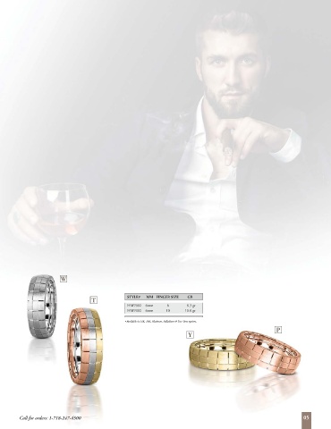 W T STYLE# MM FINGER SIZE GR HM7002 6mm 6 8.3 gr HM7002 6mm 10 10.0 gr • Available in 14K, 18K, Platinum, Palladium & Two-Tone options. P Y Call for orders: 1-718-247-4500 05