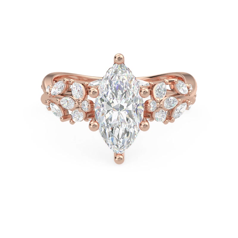 1-7.5x5.8mm/RAD; 2-0.01ct/RD; 4-0.0075ct/RD; 16-3x1.5mm/MA; 2-0.009ct/RD; 12-0.005ct/RD;
