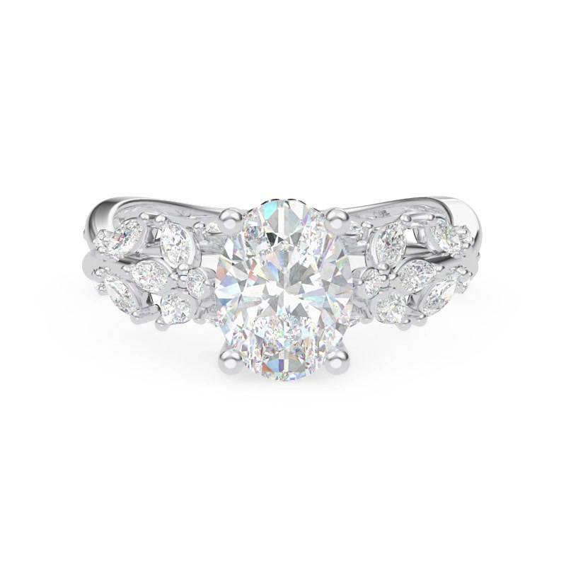 1-7.5x5.8mm/RAD; 2-0.01ct/RD; 4-0.0075ct/RD; 16-3x1.5mm/MA; 2-0.009ct/RD; 12-0.005ct/RD;