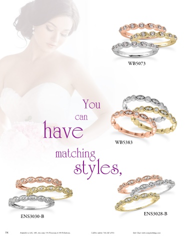 WB5073 You can have WB5383 matching styles, ENS3028-B ENS3030-B 04 Available in 14K, 18K, two-tone, 950 Platinum,& 950 Palladium. Call for orders: 718-247-4500 Live Chat: www.uniquesettings.com