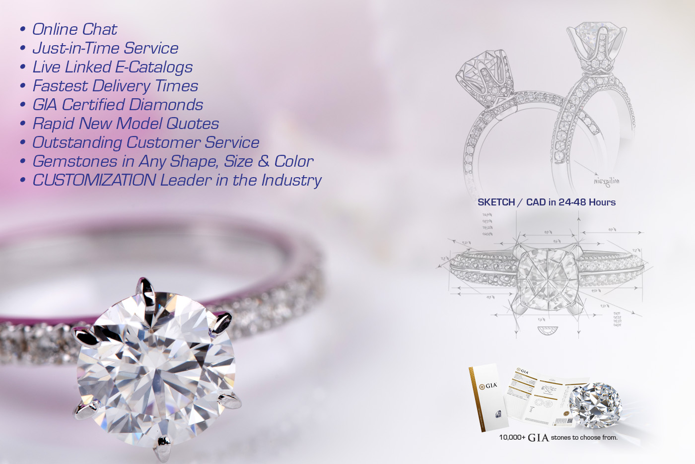 - GIA Certified Diamonds with extensive Live database search ability